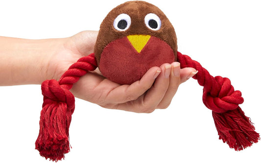 Robin Plush and Rope Christmas Dog Toy with Built-In Squeaker